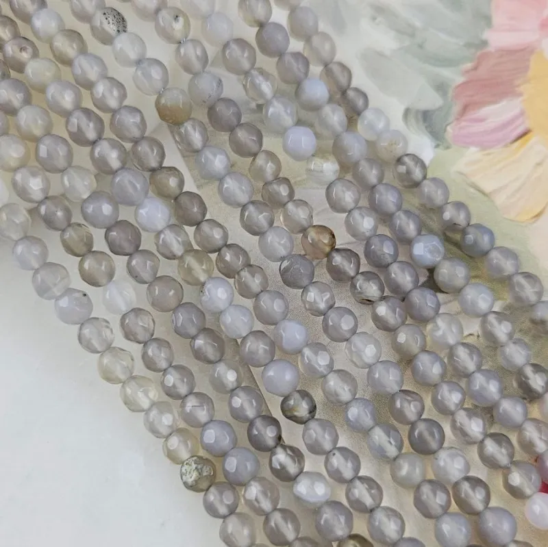 Агат серый натуральный 4 мм, гранёные бусины, нить 36 см (арт. 3189-4) — гармония спокойствия, тонкости и природной фактуры в каждом элементе.