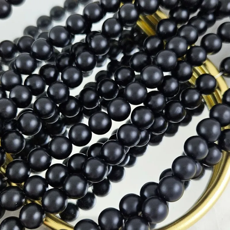 Бусины агат черный матовый 8 мм, гладкий шар (арт. 4040-8), нить около 38 см — сдержанная элегантность для ваших творческих проектов.