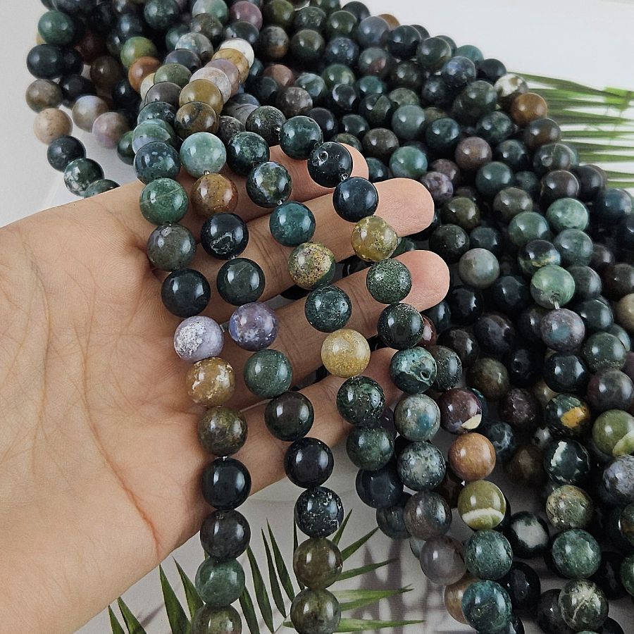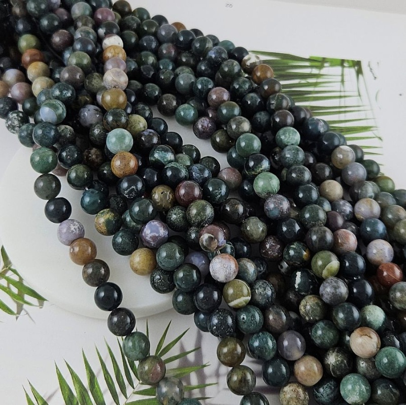 Агат индийский 9451-10 — это великолепная нить из натуральных бусин гладкой шаровой формы диаметром около 10 мм. Минерал удивительно разнообразен по окраске: глубокие тёмно-зелёные, болотные, серо-фиолетовые, сизо-синие, охристо-коричневые и бледно-лиловые оттенки с естественным мраморным узором и включениями. Каждая бусина — как миниатюрный пейзаж природы. Такой камень несёт в себе стиль и энергетику земли, гармонирует с любыми металлами и натуральными материалами.