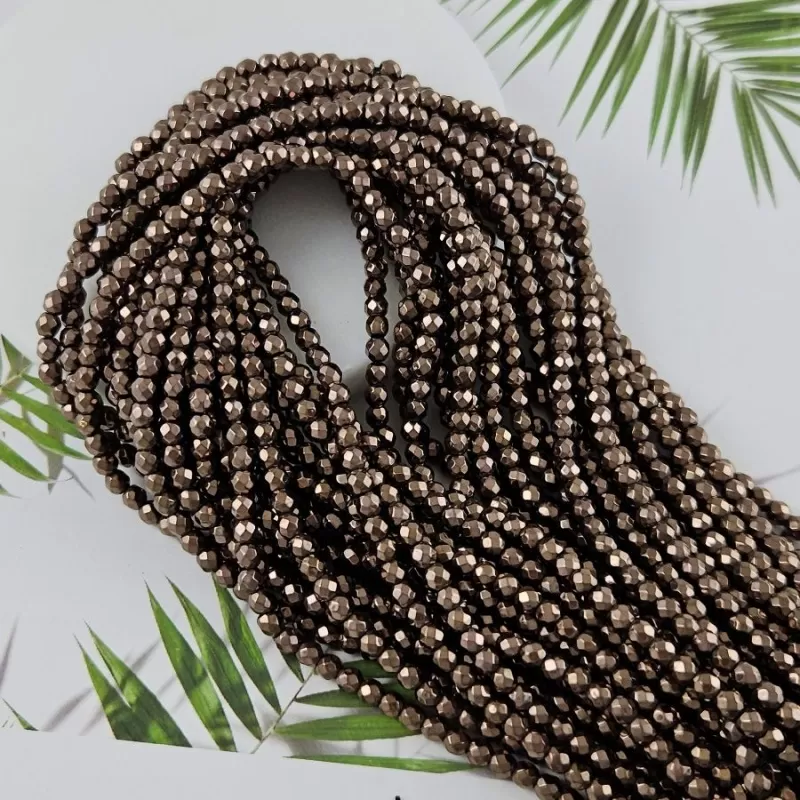 Гематитовые гранёные бусины (арт. 9942-4) с диаметром около 3.8 мм — это эффектное дополнение для создания стильных и структурированных украшений. Элегантный коричневый цвет с характерным металлическим блеском делает материал актуальным и универсальным, подходящим как для современных, так и для винтажных дизайнов. Прецизионная гранёная поверхность ловит свет, создавая утончённое мерцание.