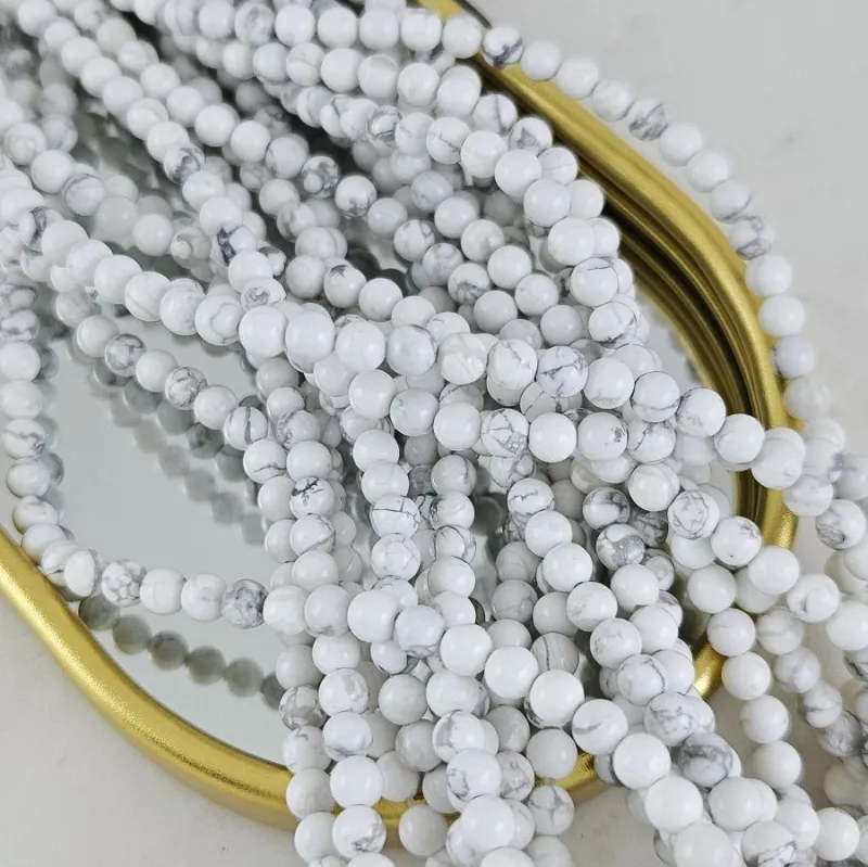 - ✅ Браслеты и колье: используйте бусины для создания нежных моно-украшений или чередуйте их с цветными камнями, жемчугом и металлическими разделителями. Белый говлит отлично «держит» яркие акценты.