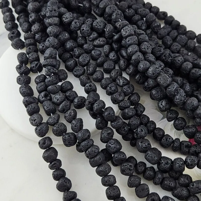 Натуральная вулканическая лава в виде бусин свободной (нерегулярной) формы размером от 7 до 10 мм — это живой природный материал с выразительной пористой структурой. Благодаря технике галтовки, каждая бусина уникальна по форме и передаёт естественную эстетику камня, обработанного временем. Чёрный цвет с лёгким матовым эффектом придаёт изделиям глубину и универсальность. Отверстие диаметром около 1 мм делает их удобными в сборке и комбинировании.
