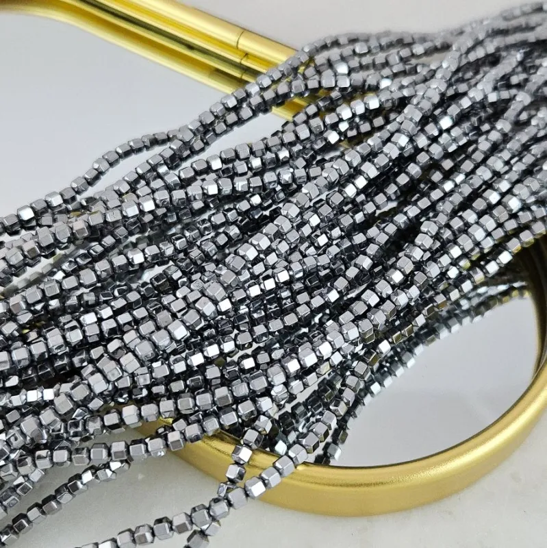 Бусины многогранные цвет «платина» — холодный блеск гематита (гематин, имитация)