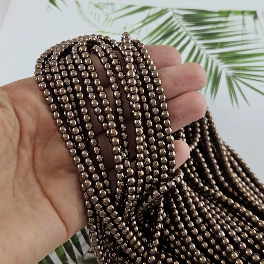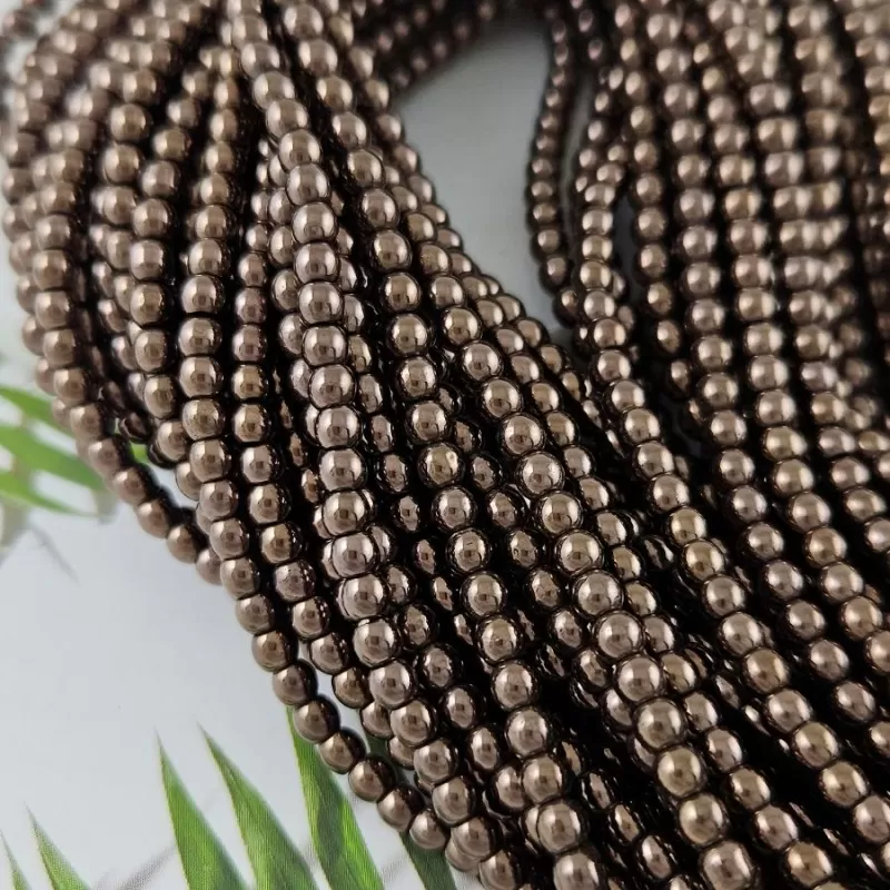 Бусины из гематина (арт. 9943-4) диаметром около 4 мм — это идеальный вариант для создания сбалансированных, аккуратных и при этом выразительных украшений. Классическая гладкая шарообразная форма и коричневый металлический блеск делают эти бусины универсальным решением для самых разных стилей: от этники до минимализма.