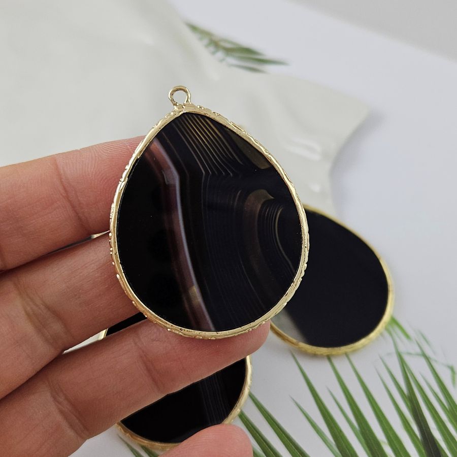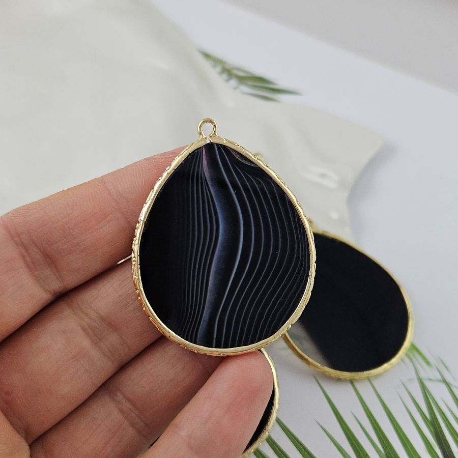 Гладкая, отполированная поверхность камня подчёркивает природную глубину цвета и структуру агата. Позолоченная оправа добавляет благородства и делает элемент стильным акцентом в любом украшении. Универсальная форма капли прекрасно смотрится в кулонах, колье или как центральный элемент в серьгах.