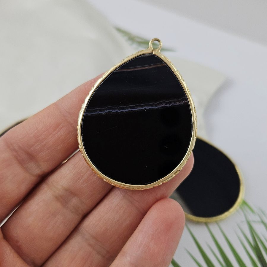 Подвеска Капля 44×34 мм — черный агат, позолота 14К (арт. 10000-З)
