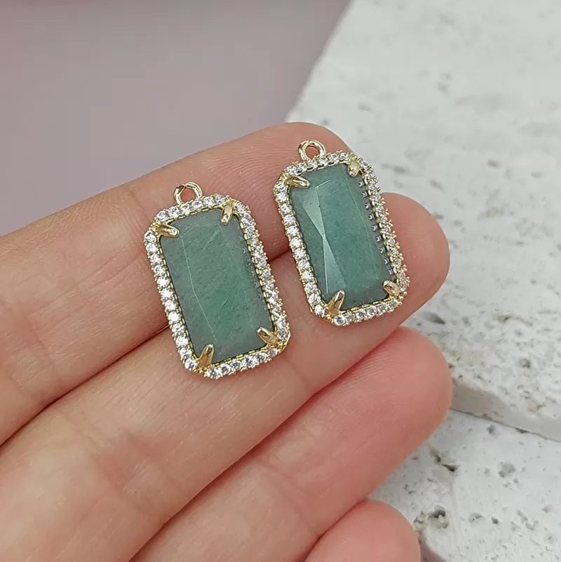 Подвеска прямоугольная 20х11.6 мм с натур. авантюрином, фианитами , позолота (7910-З)