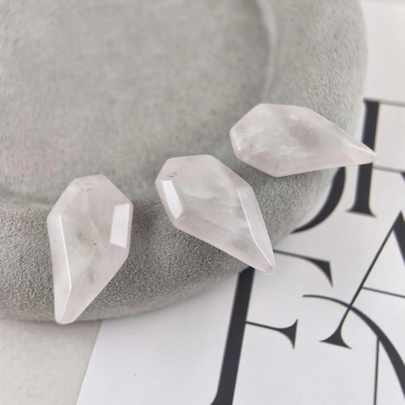 Розовый кварц подвеска кулон граненое сердце ок. 25х14х5.6 мм, отверстие ок. 1-1.5 мм (9669-РК)
