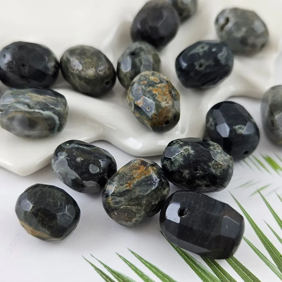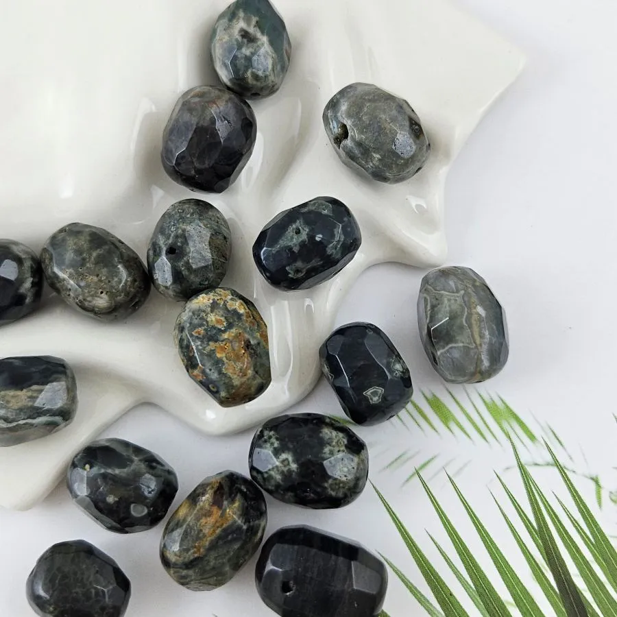 УЦЕНКА — Соколиный глаз, 1 шт., овальная гранёная бусина 16.6–19×13–15 мм, отверстие ~1 мм (арт. 1010-УЦ)