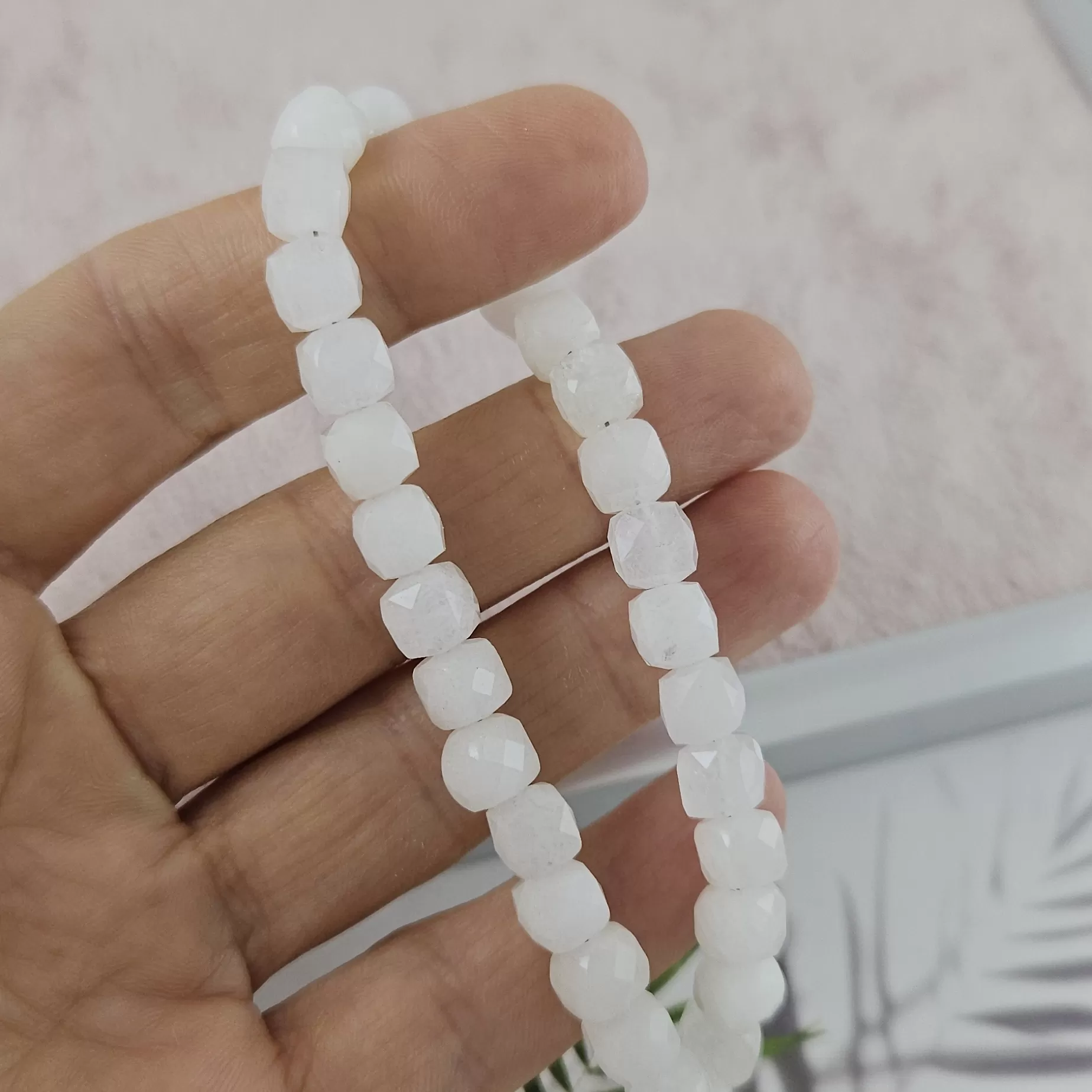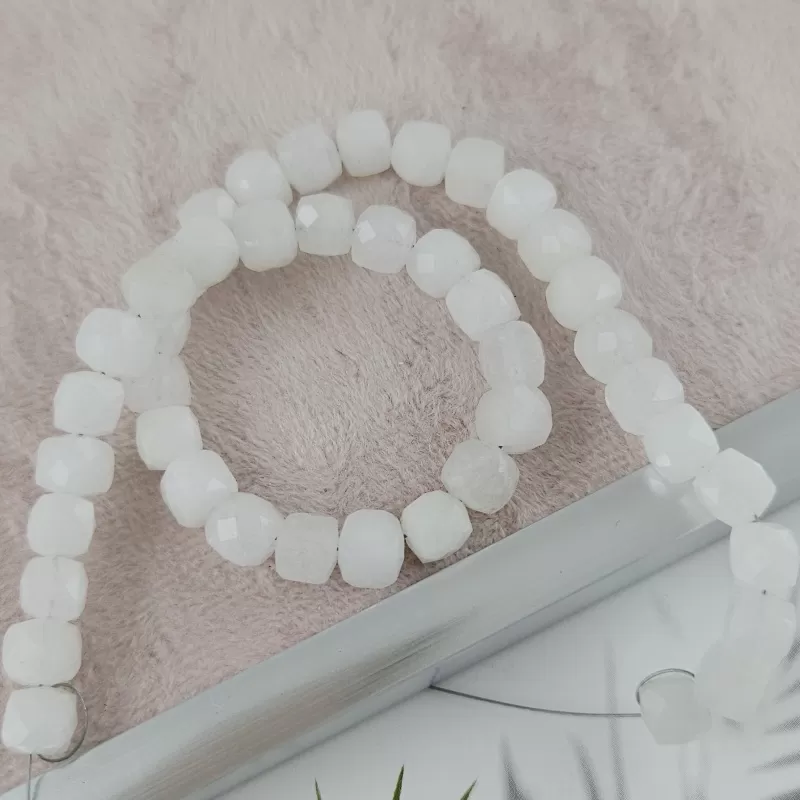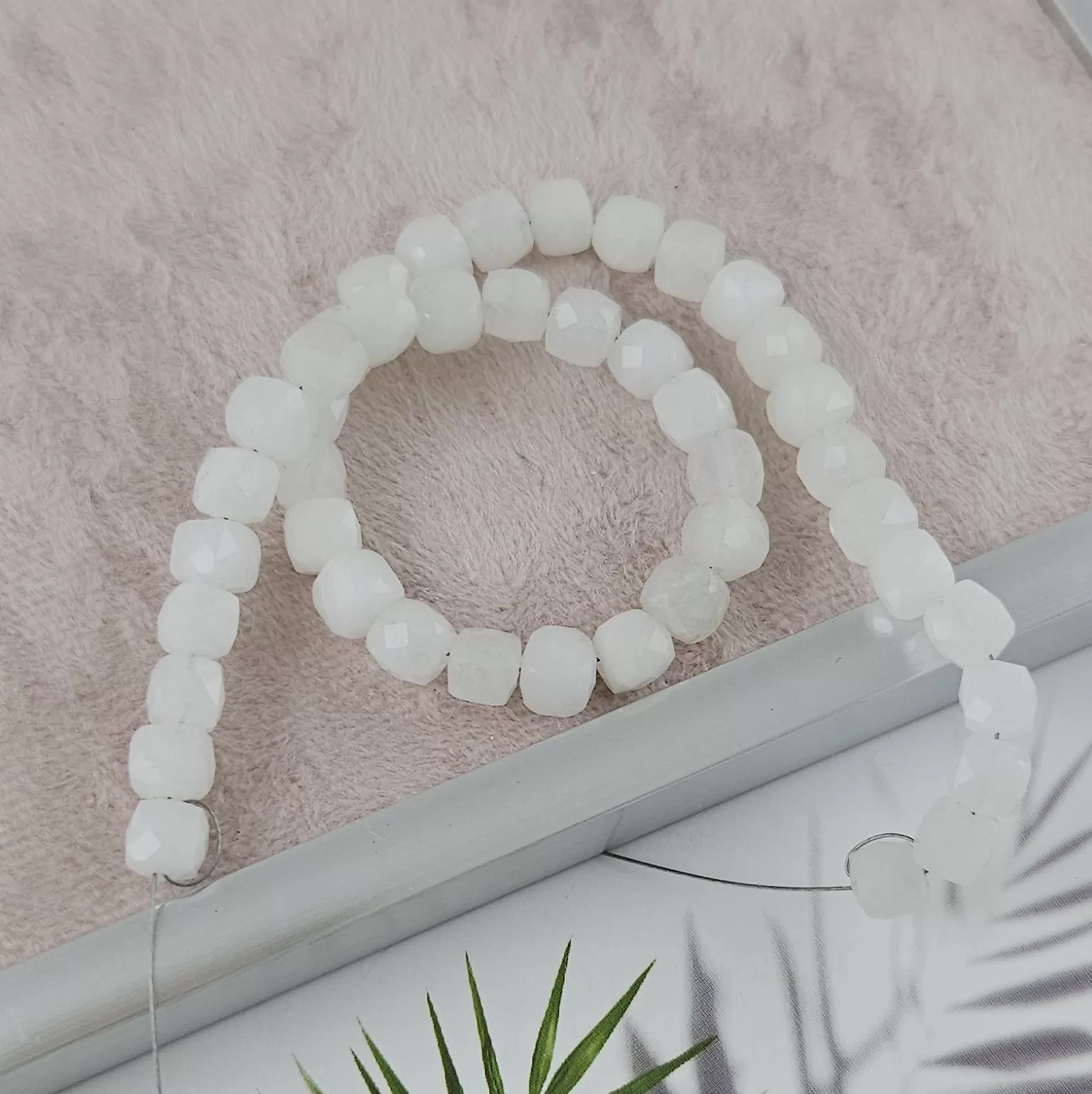 УЦЕНКА Нить Жадеит бусина граненый куб ок. 6.5-7 мм белый (9069-БЕЛ-УЦ)