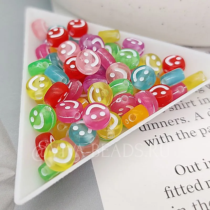 5 грамм Бусина акриловая Смайлик 7х4 мм микс цветов (7478)
