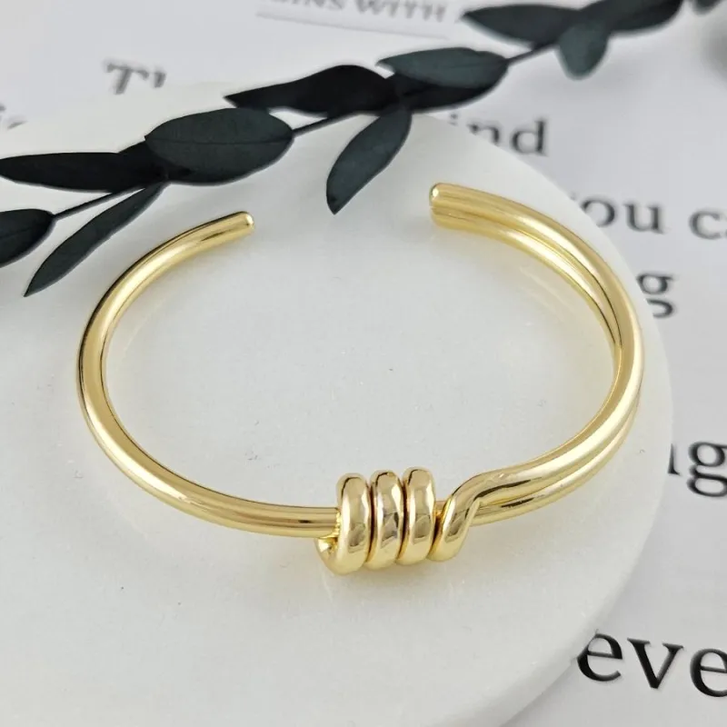 Тонкий жёсткий браслет с позолотой 14К — утончённый аксессуар для любителей минимализма и элегантной геометрии. Легкий, невесомый и изысканный, он идеально подходит как для самостоятельного ношения, так и для многослойных комбинаций. Аккуратная форма и тонкий профиль делают браслет универсальным решением как для повседневных ансамблей, так и для торжественных случаев.