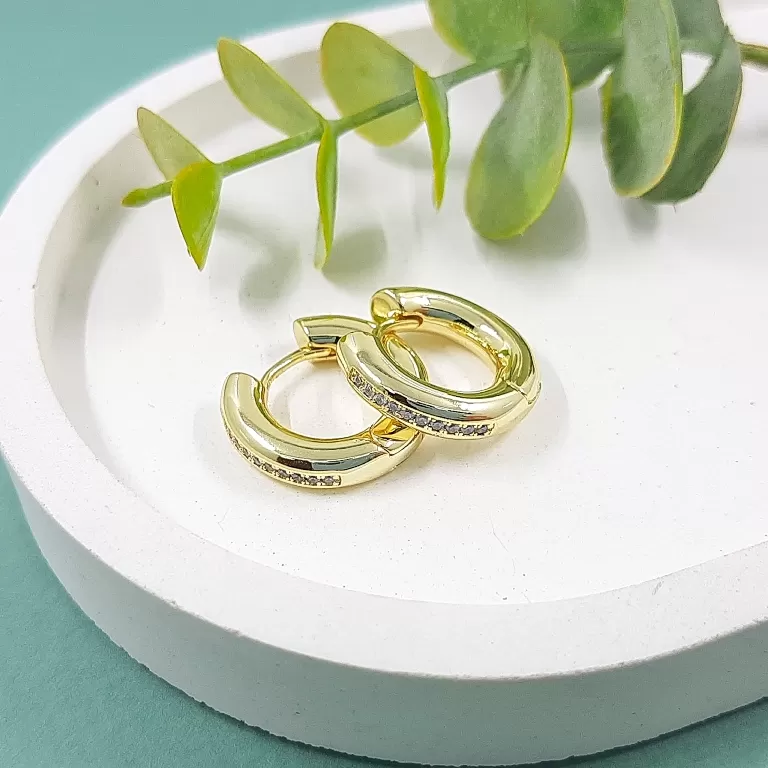 Швензы конго (бублики) с цирконами 20х4,5 мм позолота, материал латунь (5500-З)