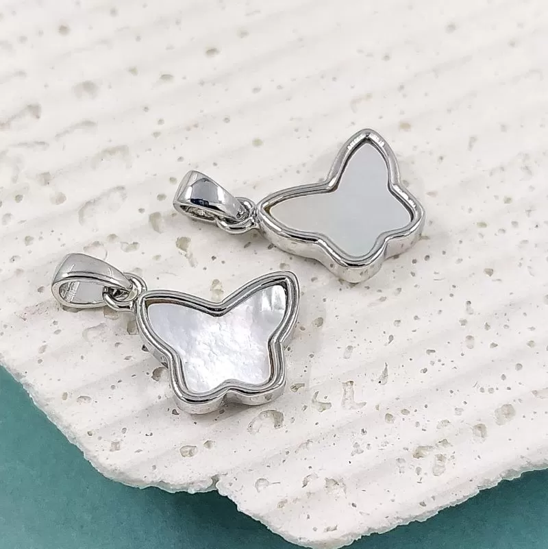 Подвеска Бабочка с перламутром 15х12 мм родиевое покр. (6018-Р)