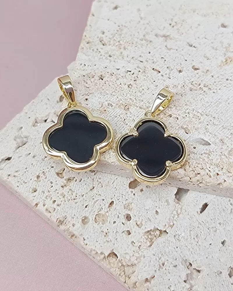 Подвеска выполнена в форме стилизованного клевера — символа удачи и изобилия. Чёрная глянцевая керамика прекрасно сочетается с сияющей позолотой 14К, создавая благородный контраст. Элемент подходит как для самостоятельного украшения, так и для комбинации с другими подвесками и бусинами в проектах ручной работы. Идеально подойдёт для романтичных, классических или роскошных образов.