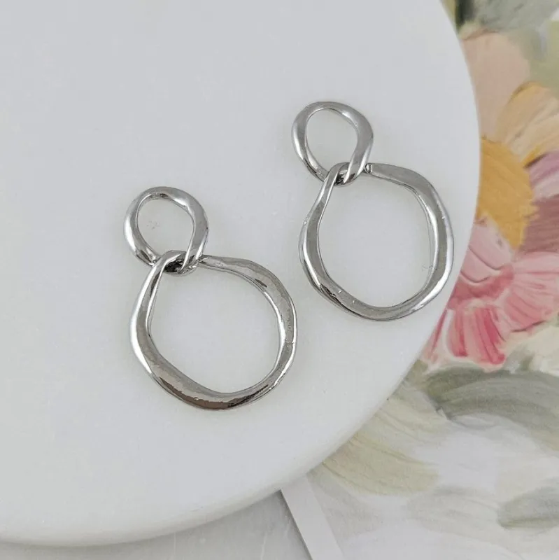 Стильная подвеска-коннектор в виде соединённых колец с нестандартной формой и фактурой. Выполнена из бижутерного сплава с покрытием под платину — благородный серебристый оттенок с лёгким глянцем. Универсальный элемент для сборки украшений, удачно сочетается с крупными звеньями, цепями, шнурами и колье.