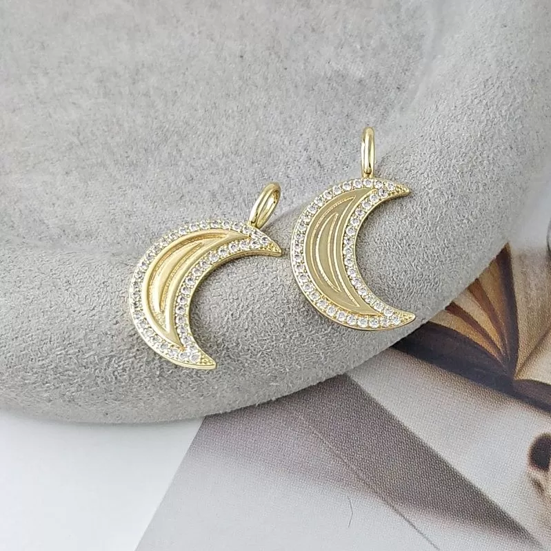 Подвеска Месяц с фианитами 25.7x14.5 мм позолота 14К, материал латунь (9297-З)