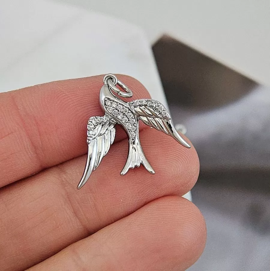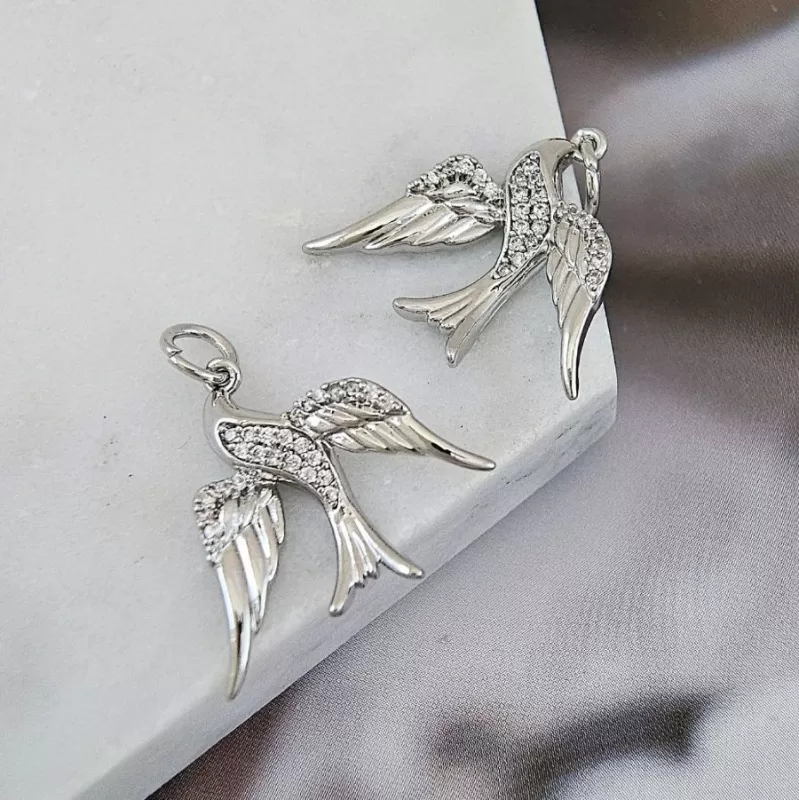 Подвеска Птица 19.3x21 мм с фианитами, родиевое покрытие, материал латунь (9724-Р)