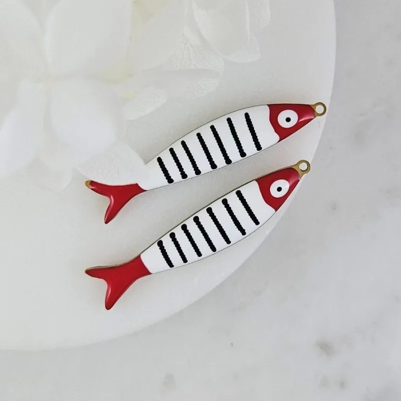 Красная головка, чёрный узор, золотое сияние — эта рыбка привнесёт в ваши украшения смелое средиземноморское настроение. Идеальна для тех, кто любит выразительные детали с характером.