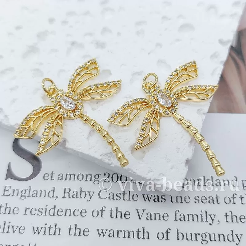 Подвеска с фианитами Стрекоза 33.4x32 мм позолота (3611)