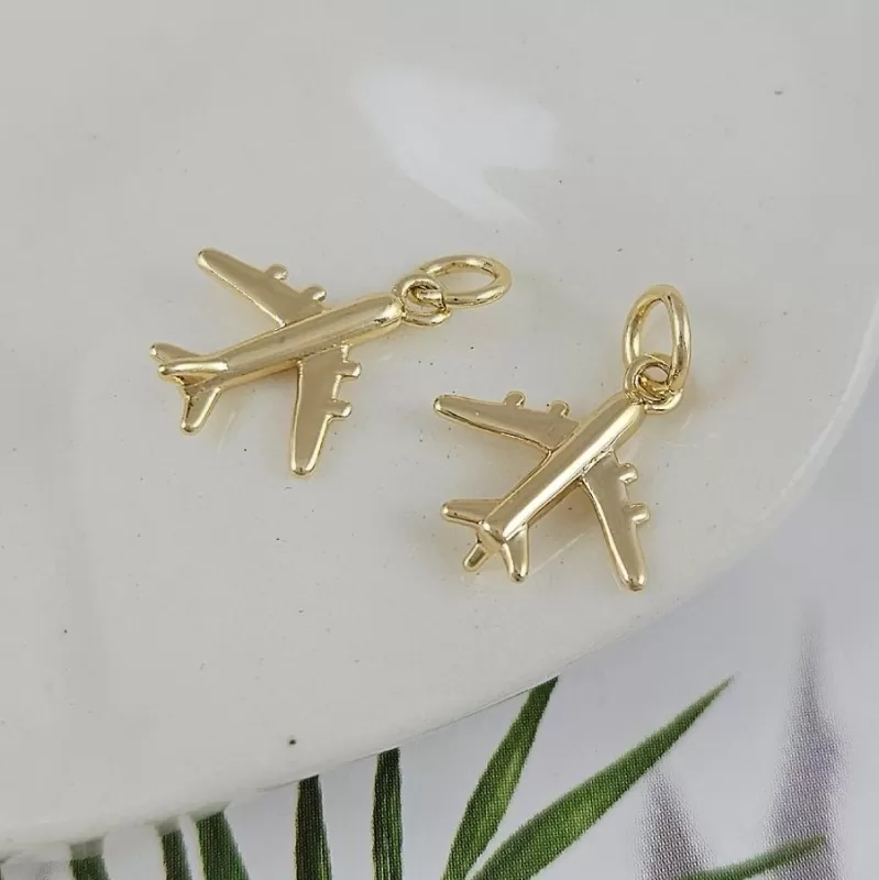 Подвеска "Самолёт" 13.4×11.6 мм, позолота 14К, латунь (арт. 8291-З)