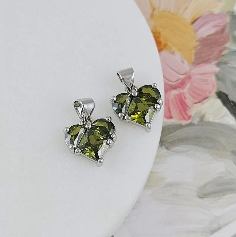 Утончённая подвеска в форме сердца размером 12 мм с крупным фианитом оливкового цвета, огранённым в романтичной форме. Корпус из латуни с родиевым покрытием придаёт изысканный блеск, а также защищает изделие от потускнения. Идеально подходит для кулонов, ожерелий и сборных украшений ручной работы.