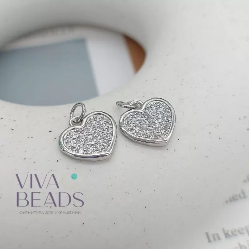 Подвеска Сердце 13х13 мм с фианитами родиевое покр. (7503-Р)