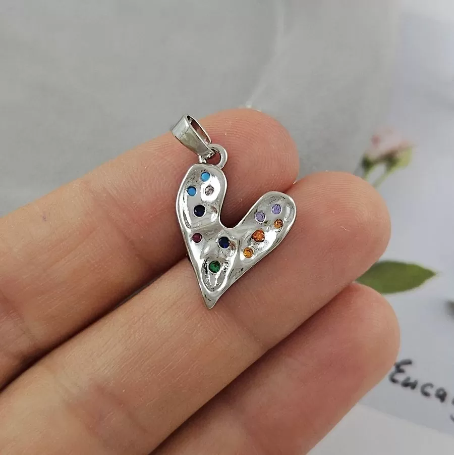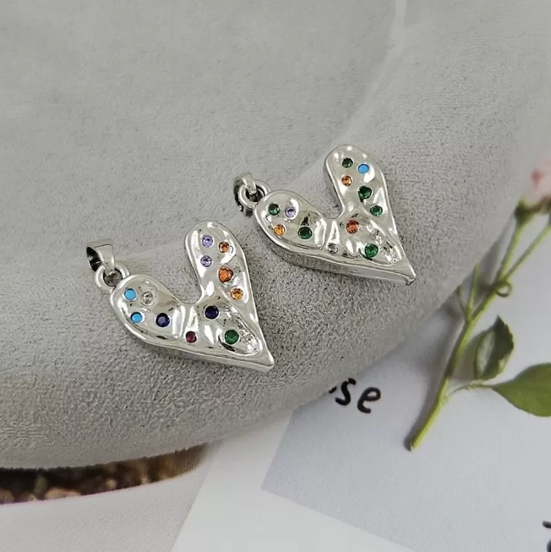 Подвеска Сердце с фианитами 19.8х14.2 мм родиевое покрытие, материал латунь (9823-Р)