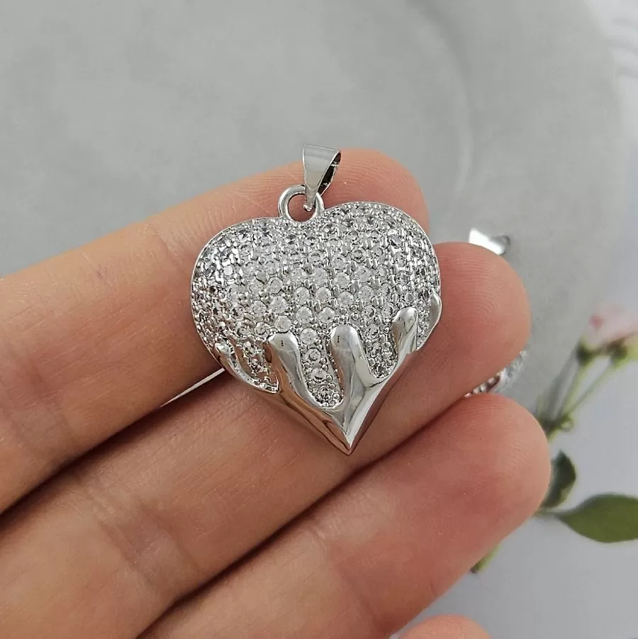 Подвеска Сердце с фианитами 25х23х6.4 мм родиевое покрытие, материал латунь (9825-Р)