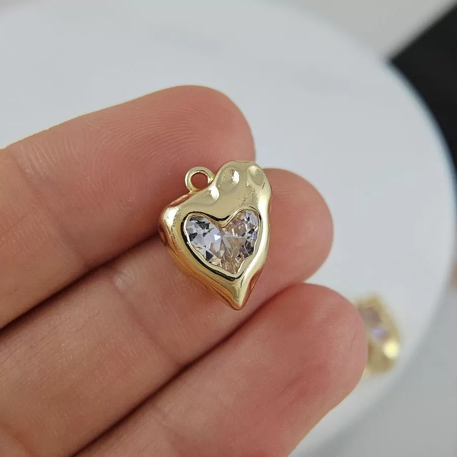 Подвеска Сердце с фианитом 15х12.3х7 мм позолота 14К, материал латунь (6604-З)