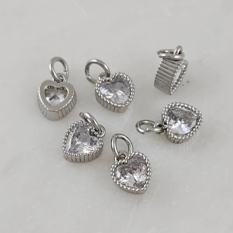 Нежная подвеска в форме сердца с огранённым прозрачным фианитом в серебристой оправе. Выполнена из латуни и покрыта родием, который придаёт благородный блеск и устойчивость к потускнению. Объёмная форма с аккуратной декоративной кромкой делает подвеску особенно выразительной.