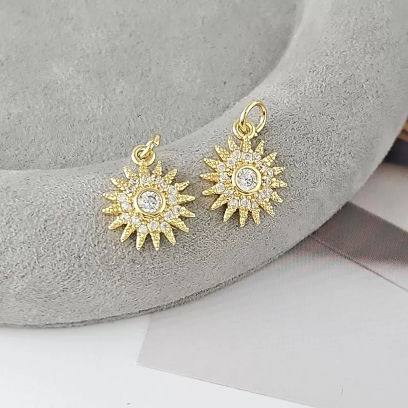 Подвеска Солнце с фианитами 15х12.4 мм позолота 14К, материал латунь (9329-З)