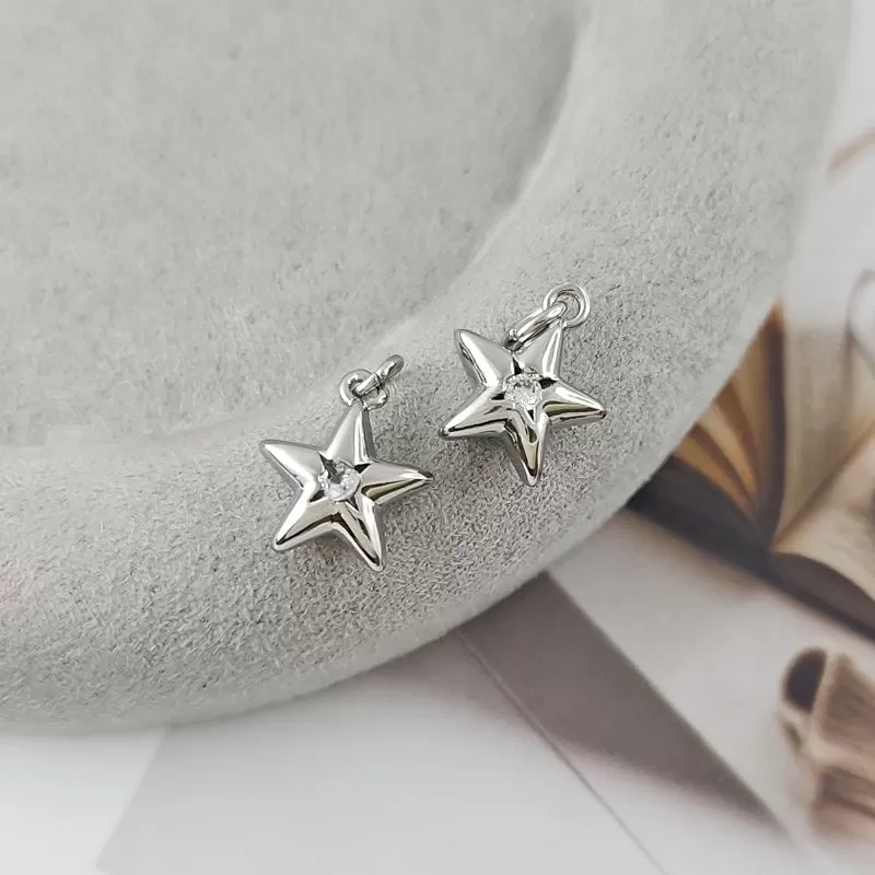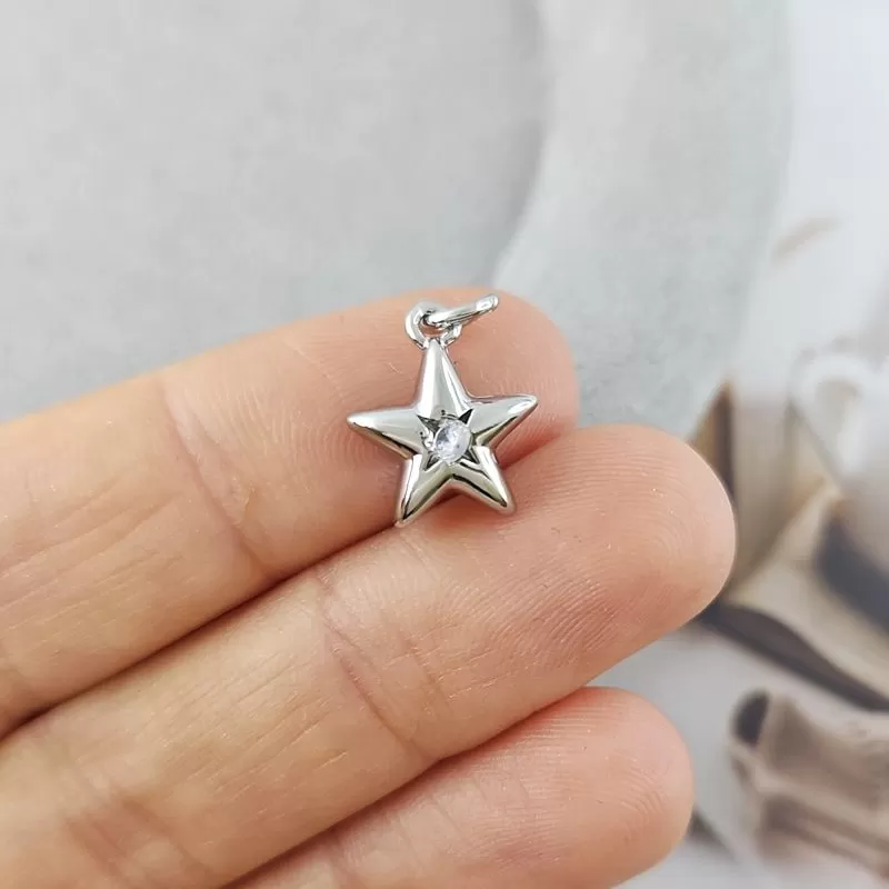 Эта подвеска "Звезда", украшенная роскошным фианитом и покрытая родиевым слоем, станет впечатляющим элементом для создания стильных украшений. Небольшой размер и искусное исполнение позволяют использовать её в самых разнообразных проектах - от кулонов до чокеров. Прекрасный выбор для тех, кто стремится добавить своему изделию блеск и выразительность. Создателям бижутерии не нужно беспокоиться о долговечности: качественное родиевое покрытие сохранит свежий вид аксессуара, защищая его от потускнения. Этот элемент легко интегрируется в дизайн серёг, колье и других украшений, впечатляя своим оригинальным дизайном и придавая изделиям завершающий штрих.