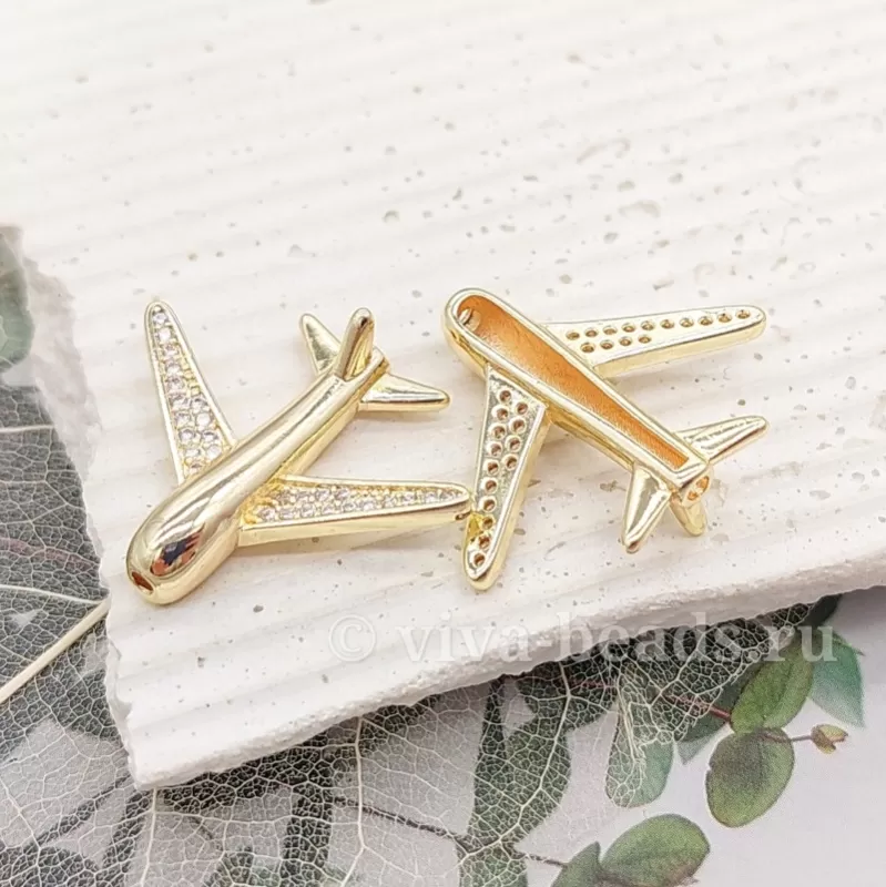 Коннектор Самолет 22х26 мм с фианитами позолота, материал латунь (6888-З-УЦ)