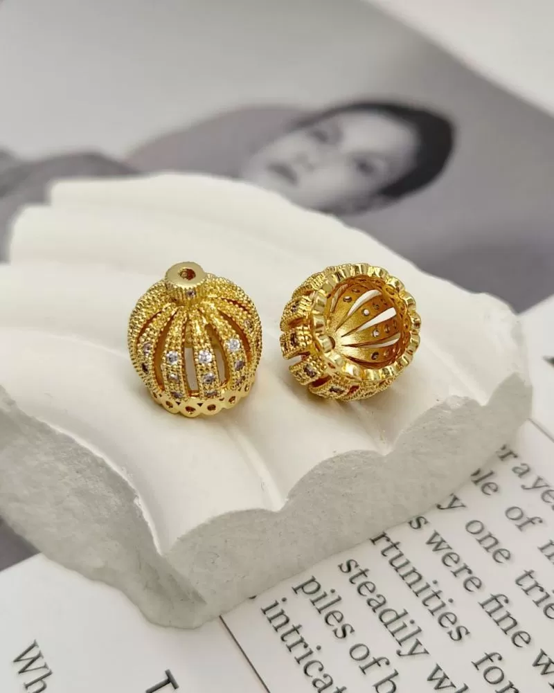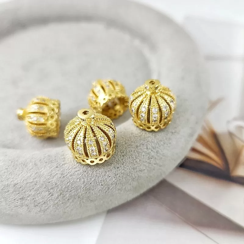 Шапочка концевик Корона 13х14 мм с фианитами с позолотой 14К (2974-З) для создания украшений