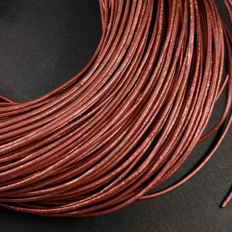 Шнур кожаный круглый, диаметр (толщина) 1,5 мм с ПЕРЛАМУТРОВЫМ покрытием, цвет ТЕРРАКОТОВЫЙ (арт . 2990-ТК)