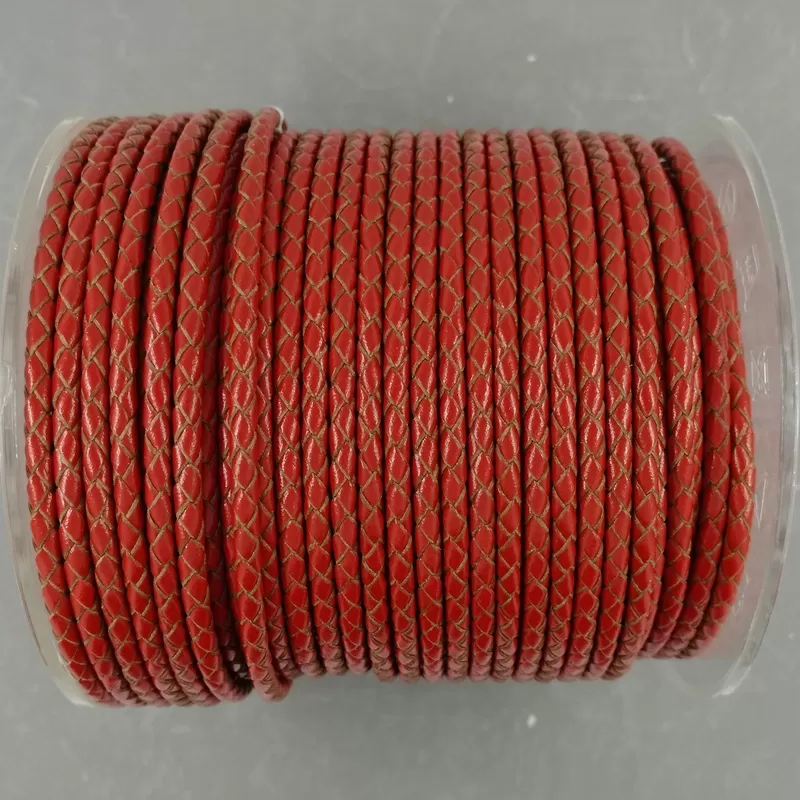 Шнур кожаный плетеный, цвет КРАСНЫЙ, толщина 3 мм (арт. 2809)