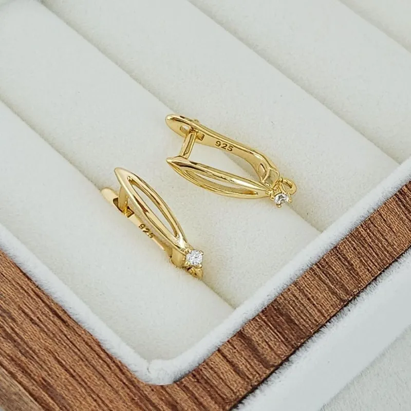 Швензы с английским замком и фианитом — изящная основа для серёжек в золоте 14К