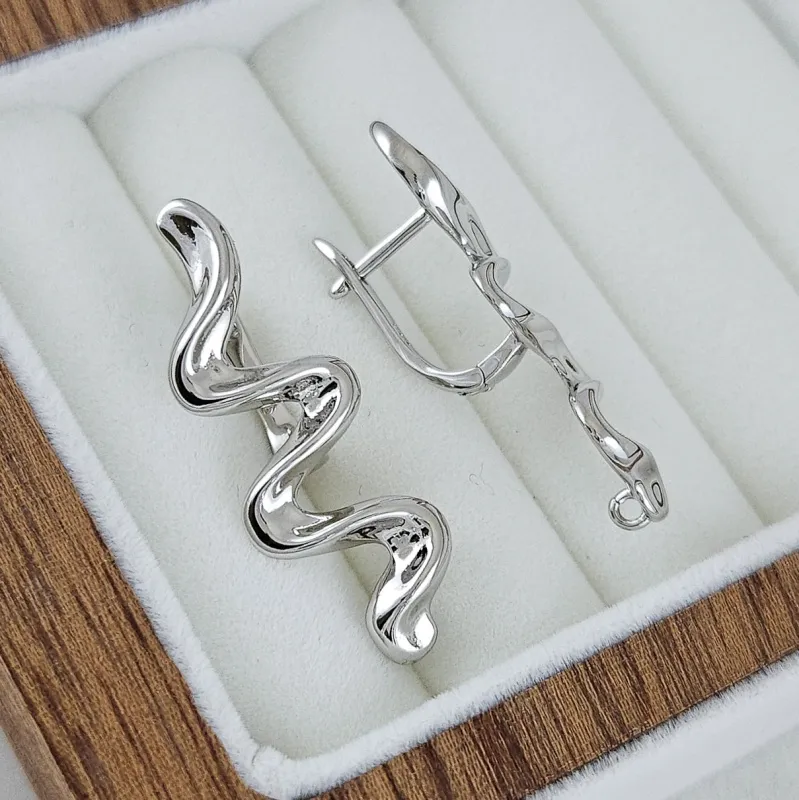 Швензы с английским замком «Волна» длинные — выразительная основа для серёжек в холодном блеске родия