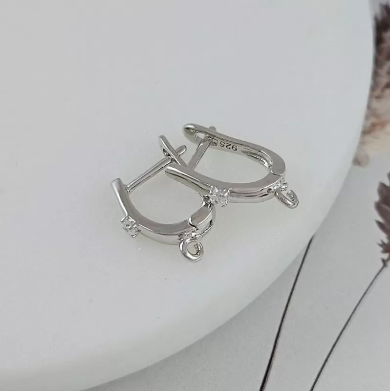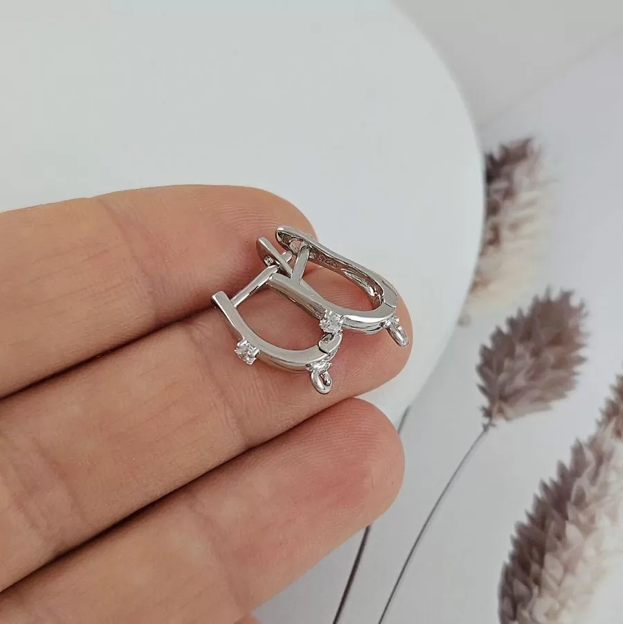 Швензы с замком 16,7 мм, родиевое покрытие, фианит, латунь (5451-Р), 1 пара