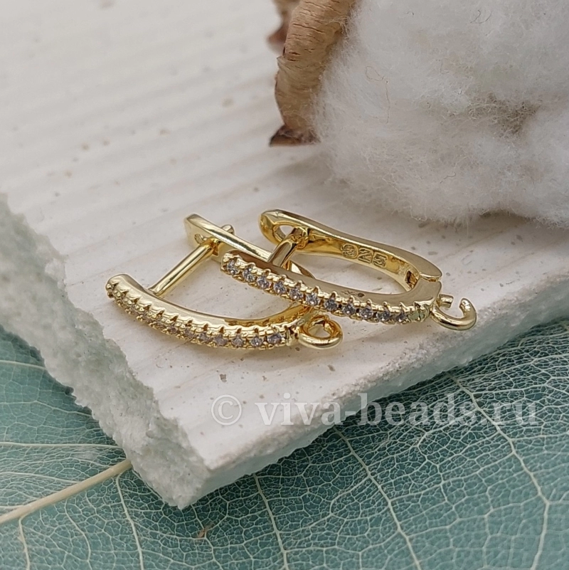 Швензы с замком 17х1.8 мм с фианитами позолота, материал латунь (6394-З)