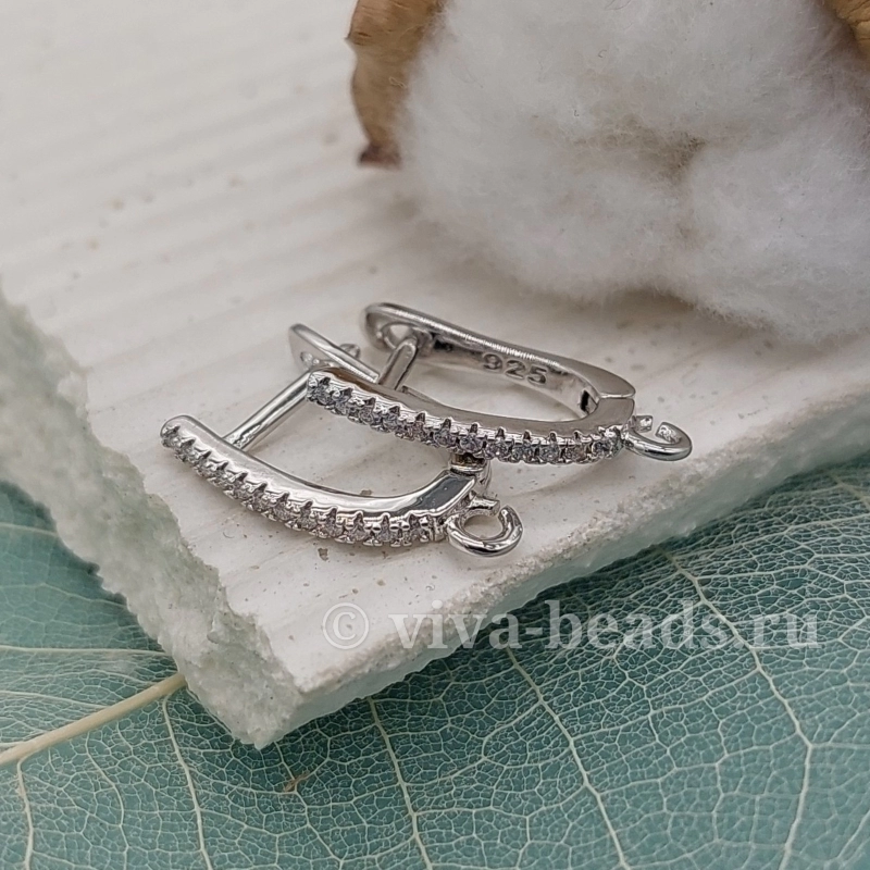 Швензы с замком 17х1.8 мм с фианитами родиевое покр. (6394-Р)