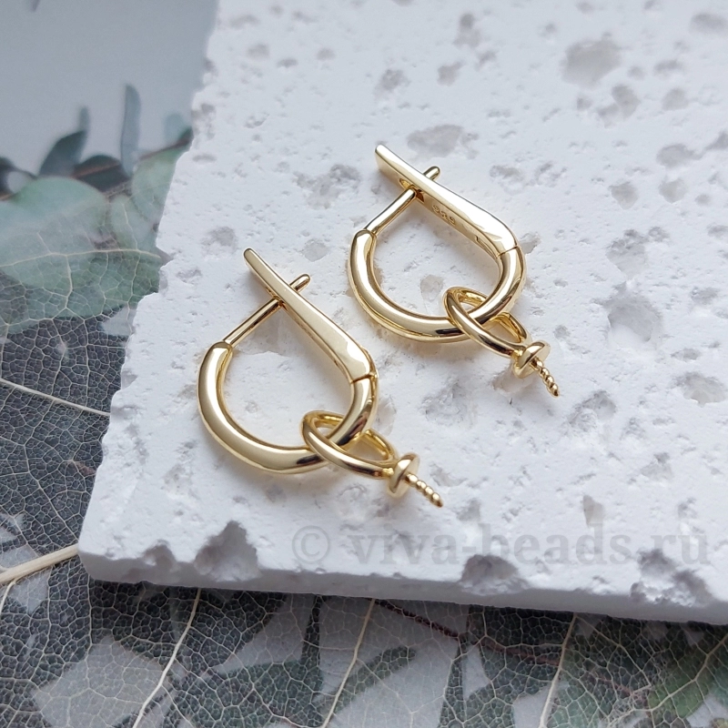 Швензы с замком с бейлом для вклейки 15.2х2.2 мм, бейл 13х7 мм, позолота 14К, материал латунь (6989-З)