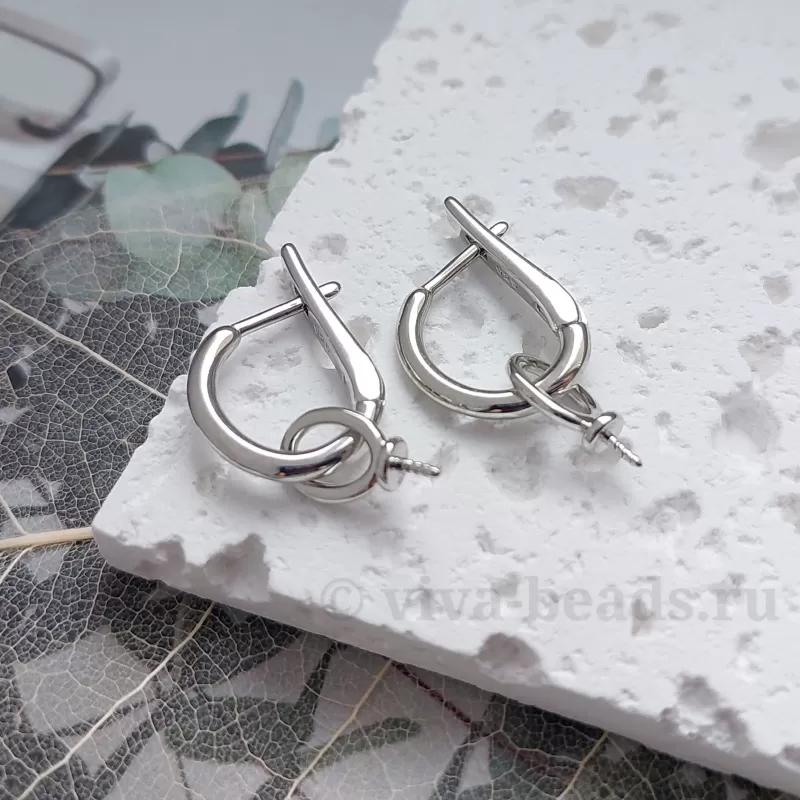 Швензы с замком с бейлом для вклейки 15.2х2.2 мм, бейл 13х7 мм, родиевое покр., материал латунь (6989-Р)