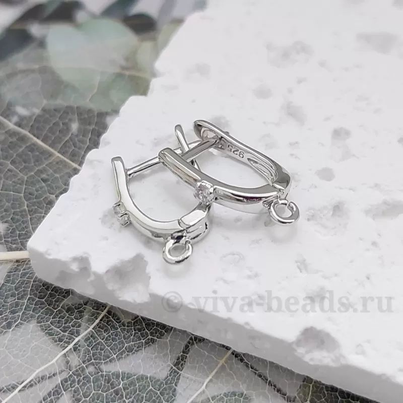 УЦЕНКА Швензы с фианитом с замком 16,7 мм родиевое покр. (5451-Р-УЦ)