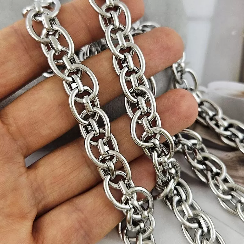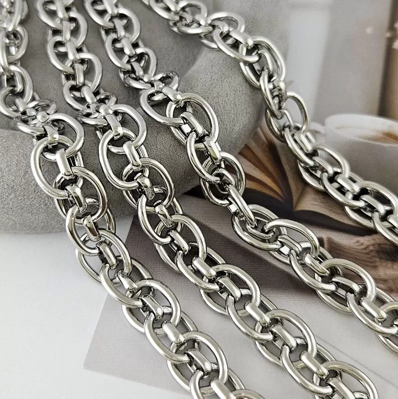 Цепь для создания украшений и рукоделия объемная толщиной 10.6 ммм с родиевым покрытием, материал латунь (9267-Р)