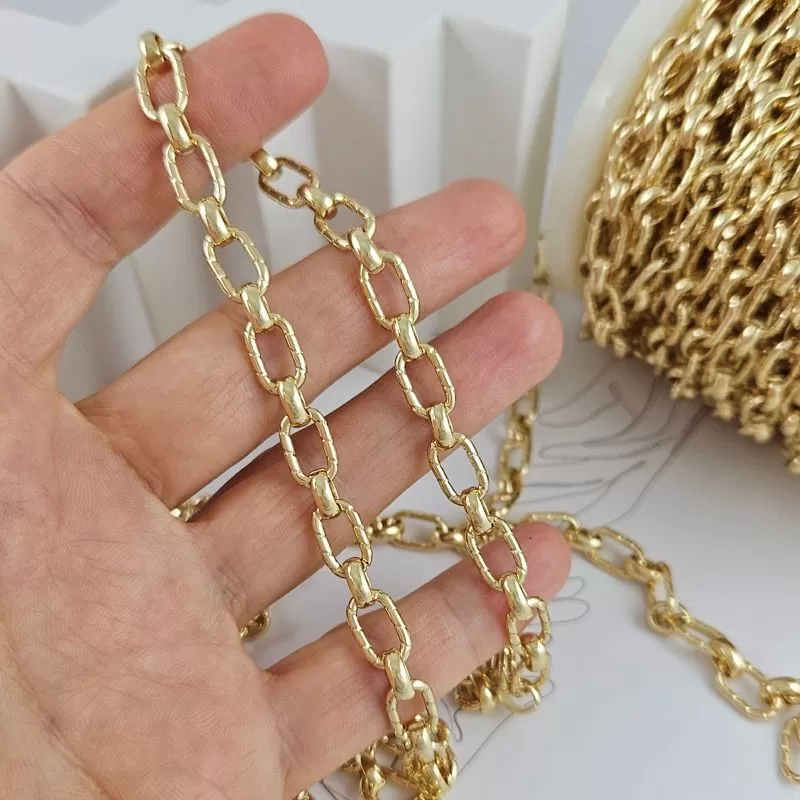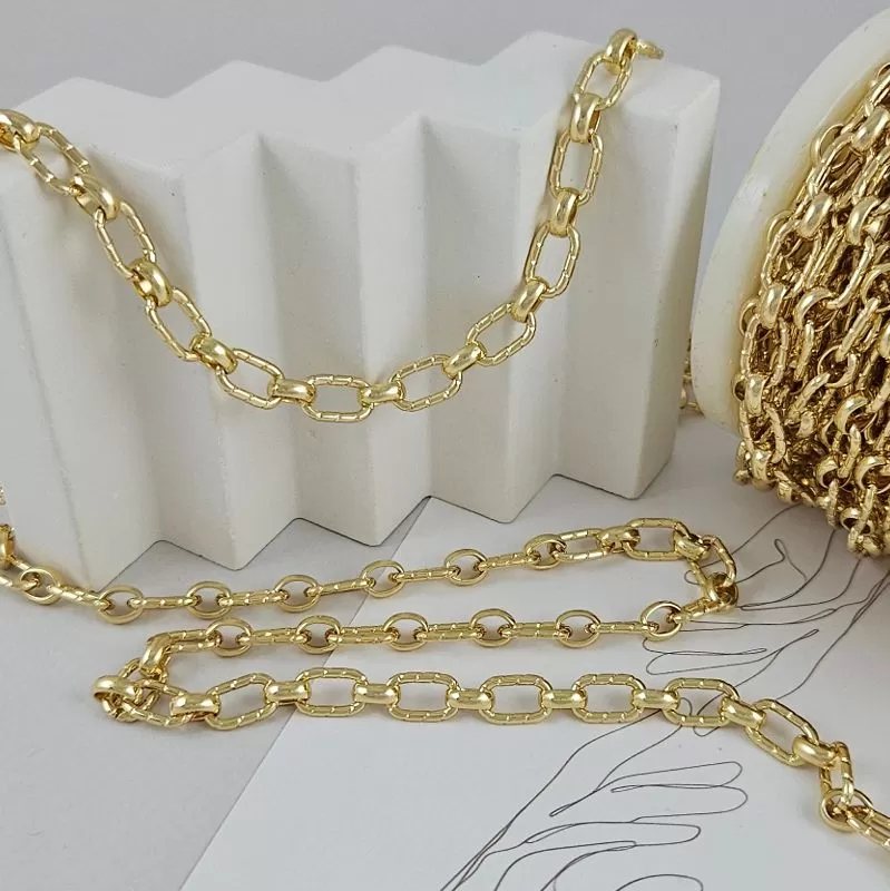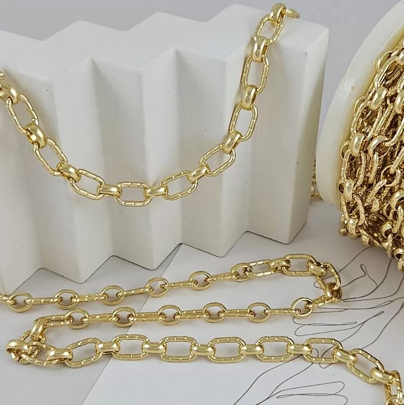 Цепь овальная текстурированная толщиной 6.3 мм, звено 6.3х10.6х1.4 мм, звенья разъемные, позолота 14К, материал латунь (9443-З)