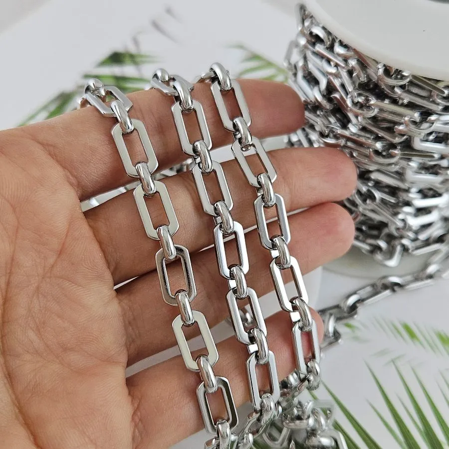 Цепь с овальными звеньями, толщина ~7 мм, родиевое покрытие, латунь (арт. 8685-Р)