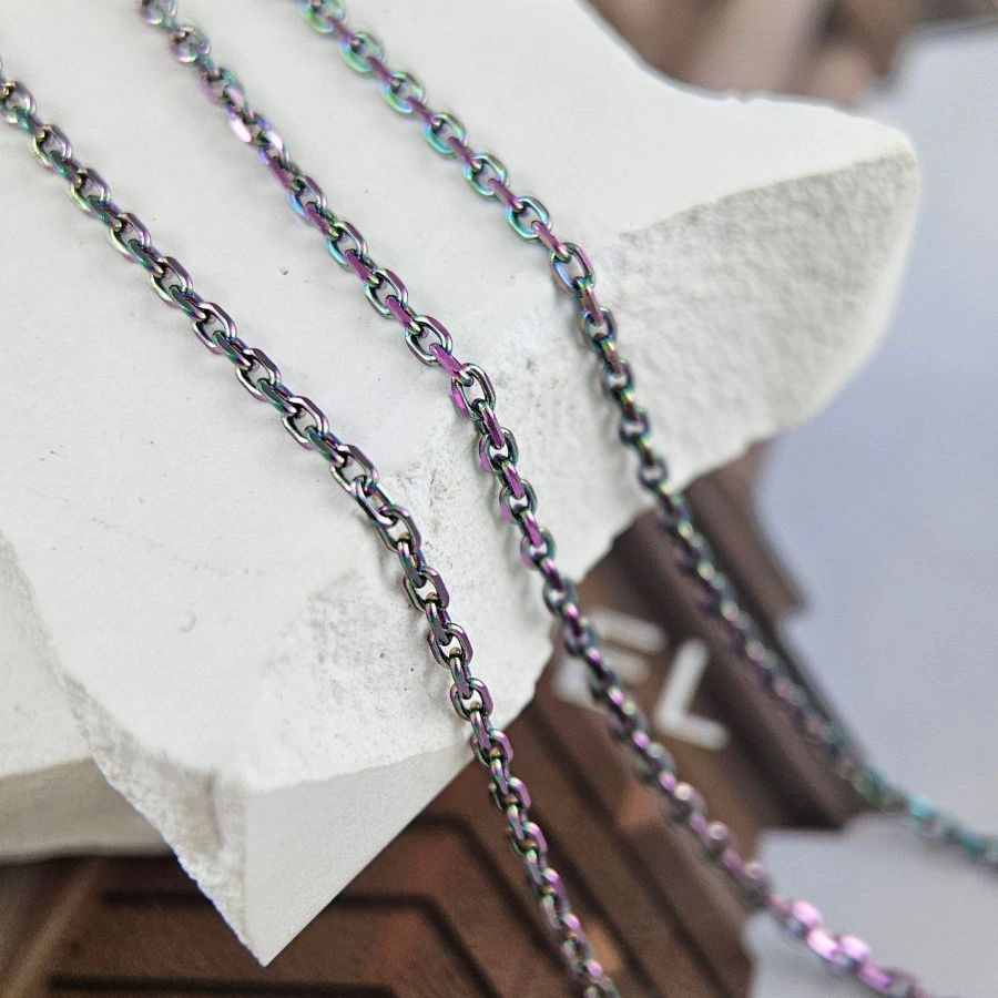 Цепь тонкая толщиной 1.7 мм, звенья запаяны, нержавеющая сталь, радужная гальваника (9666)