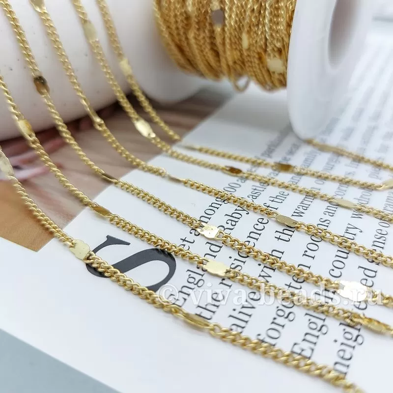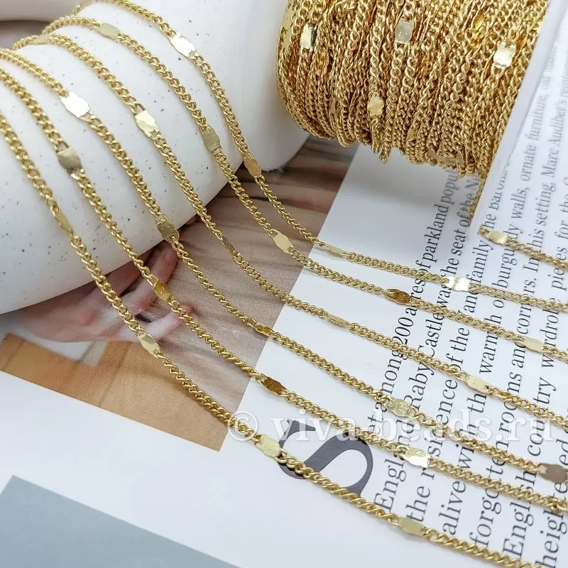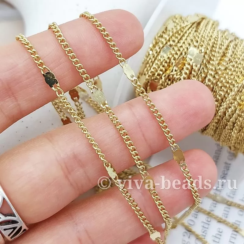Цепочка 1.8 мм (толщина цепочки) , 2.8 мм толщина декоративной вставки, позолота, материал латунь (5552)